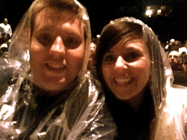 Not the best pictures in the world, but gotta show off our cool ponchos! :) We got seriously splashed with some goop. I don't know what it was but it was like matted in our hair and got on the people behind us who didn't even get ponchos with their seats. haha. it was funny!